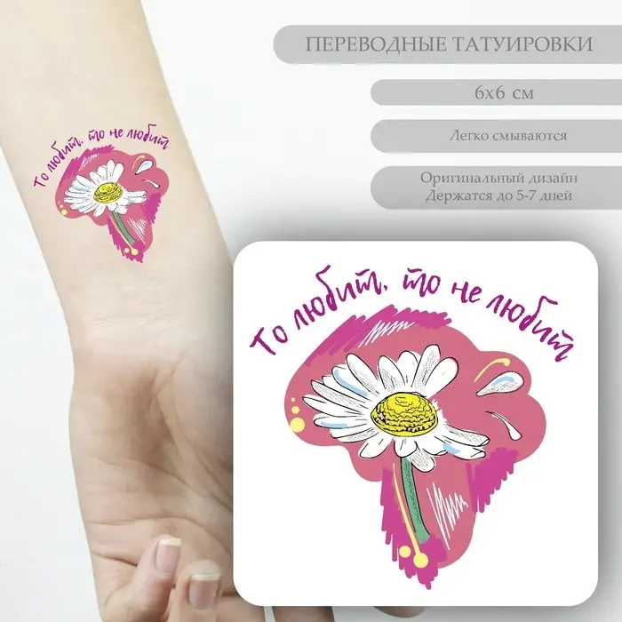 Переводная тату на тело цветная «Ромашка: То любит, то не любит», 6×6 см