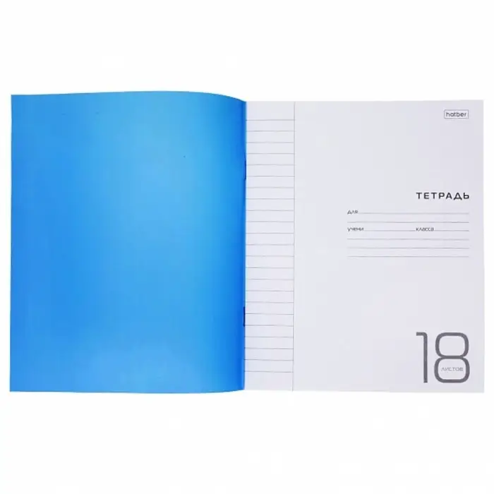 Тетрадь 18 листов в линейку Синяя, пластиковая обложка, титульный лист, блок офсет 65г/м2