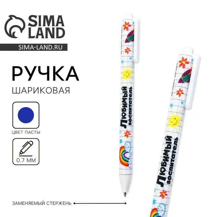 Ручка шариковая, автоматическая матовая, 0.7 мм «Любимый воспитатель»
