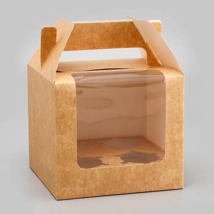 Коробка подойдет для капкейков, маффинов, пирожных или другого десерта.
