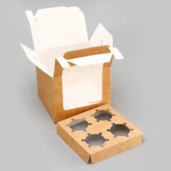 Коробка для 4 капкейков, крафт 16×16×14 см
