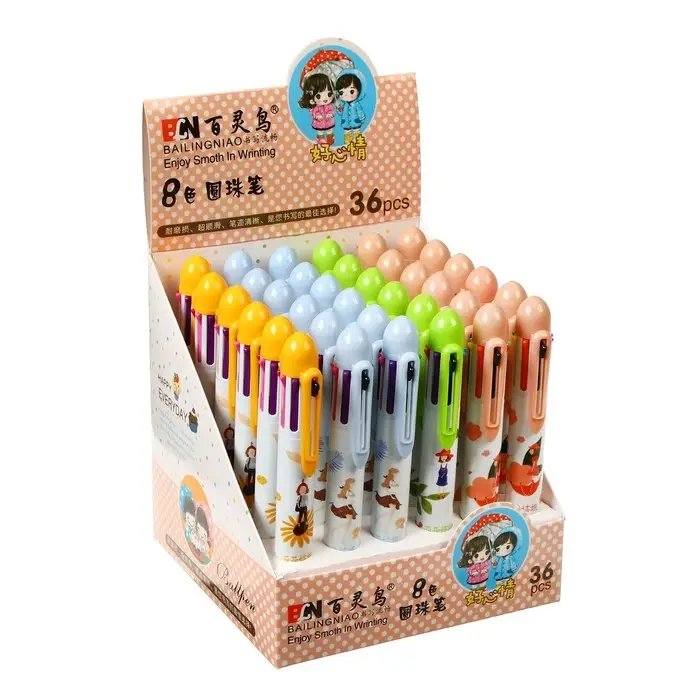 Ручка шариковая многоцветная, автоматическая 8 цветов, стержень 0.8 мм, МИКС