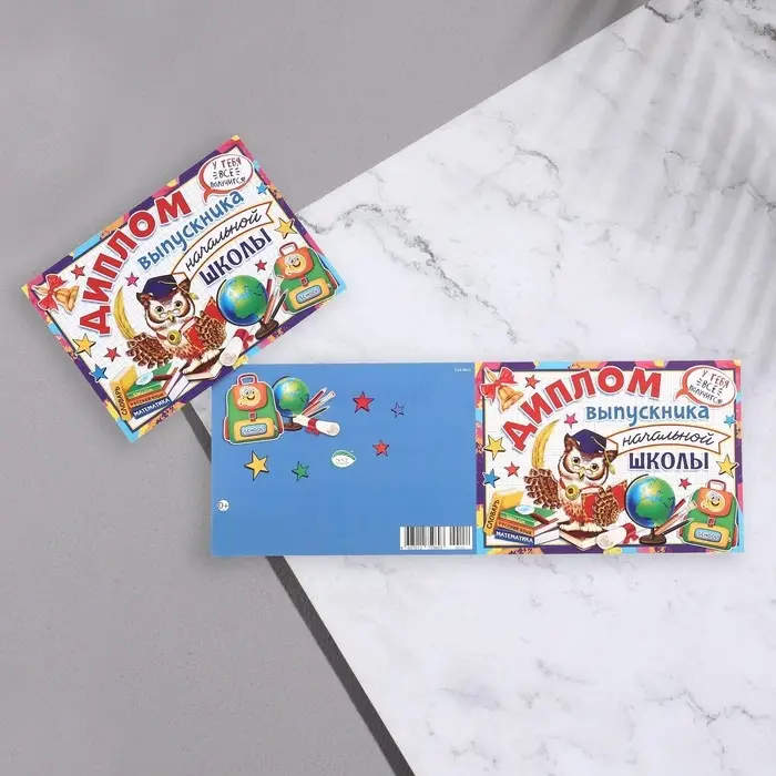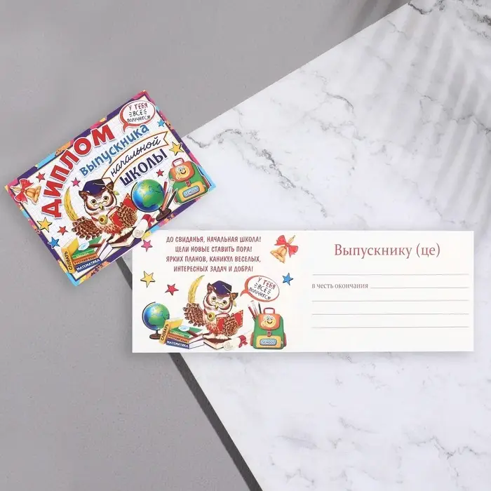 Диплом "Выпускник начальной школы!" сова, 44,5х16,5 см