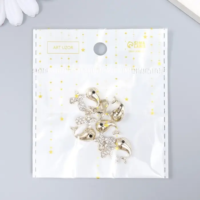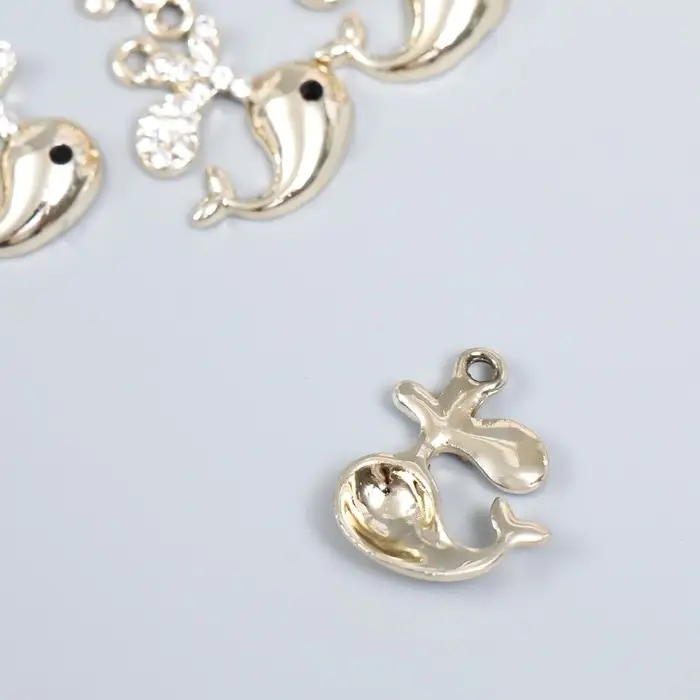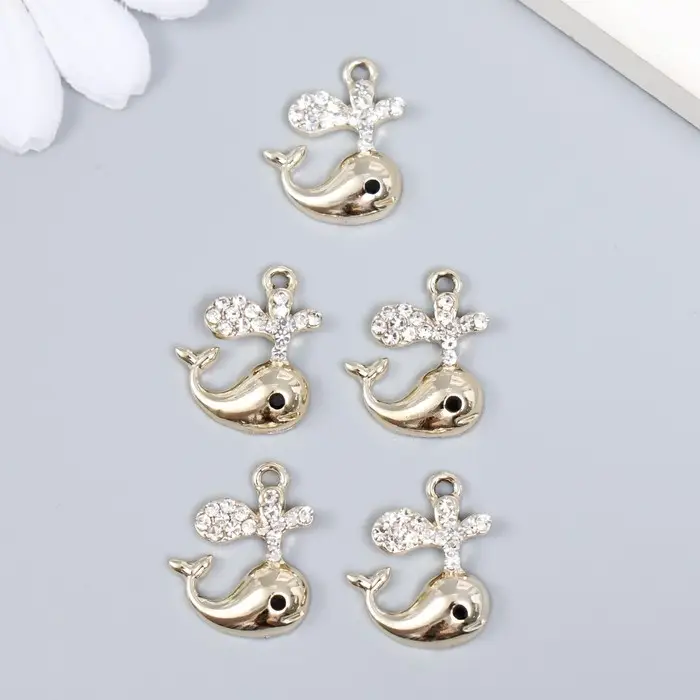 Декор для творчества металл, стразы "Весёлый кит с фонтанчиком" золото 1,7х2 см