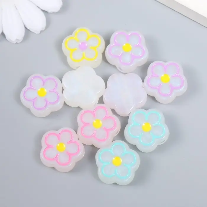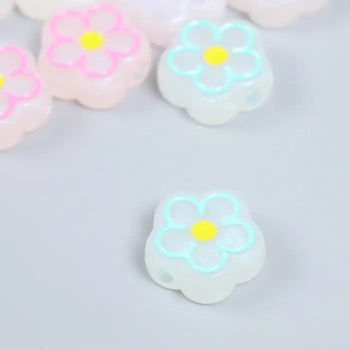 Бусина пластик "Цветочек с контуром" фосфорная МИКС 1,9х1,9х0,8 см
