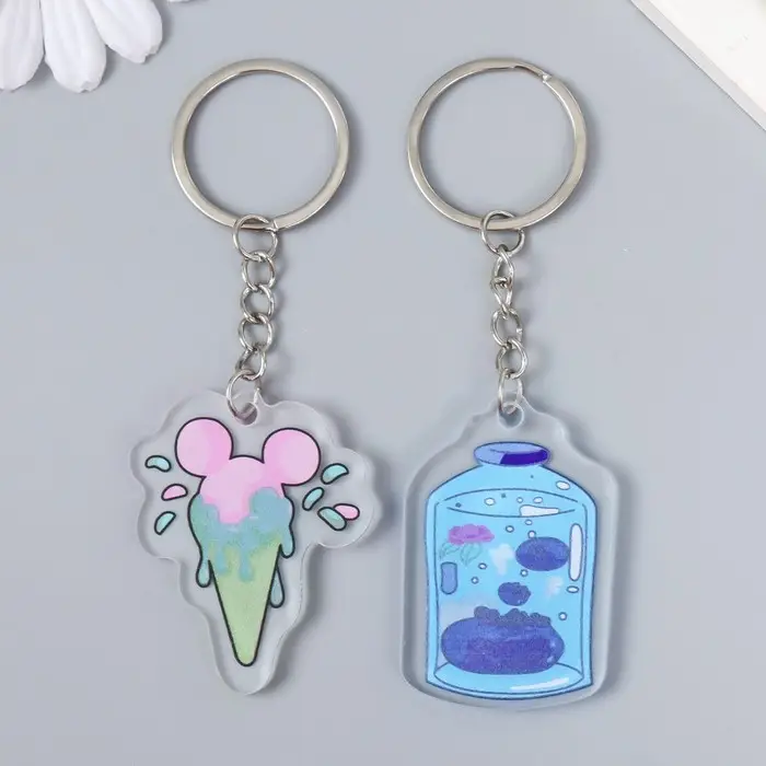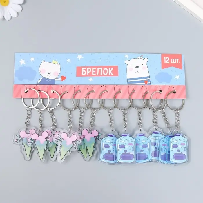 Брелок акрил "Мороженое в рожке/Бутыль" МИКС 3,8х5,2 см