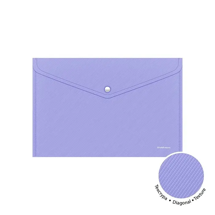 Папка-конверт на кнопке А4, 180 мкм, ErichKrause Diagonal Pastel, непрозрачный, тиснение, микс