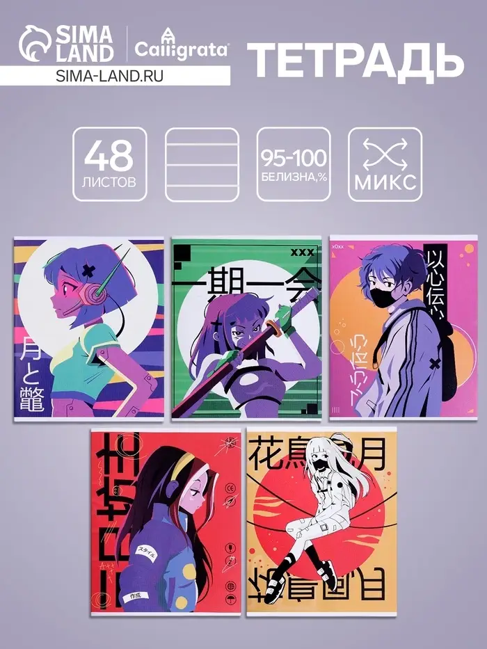 Тетрадь 48 листов в линейку Calligrata «АнимеArt», в линейку, обложка мелованный картон, ВД-лак, блок офсет, МИКС