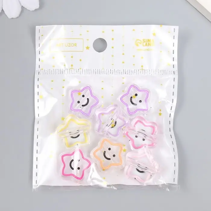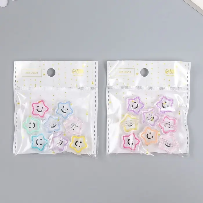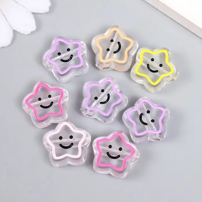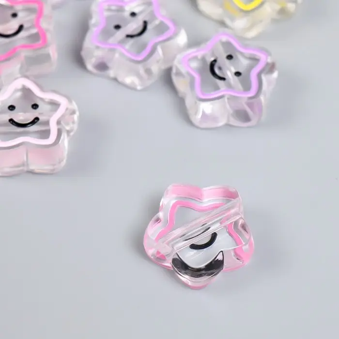 Бусина пластик "Весёлая звезда с цветной обводкой" глянец МИКС 2х2х0,8 см