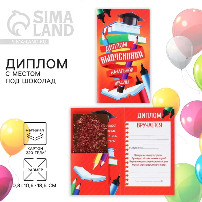 Диплом с местом под шоколад на Выпускной «Выпускник начальной школы», 220 гр/ кв. м