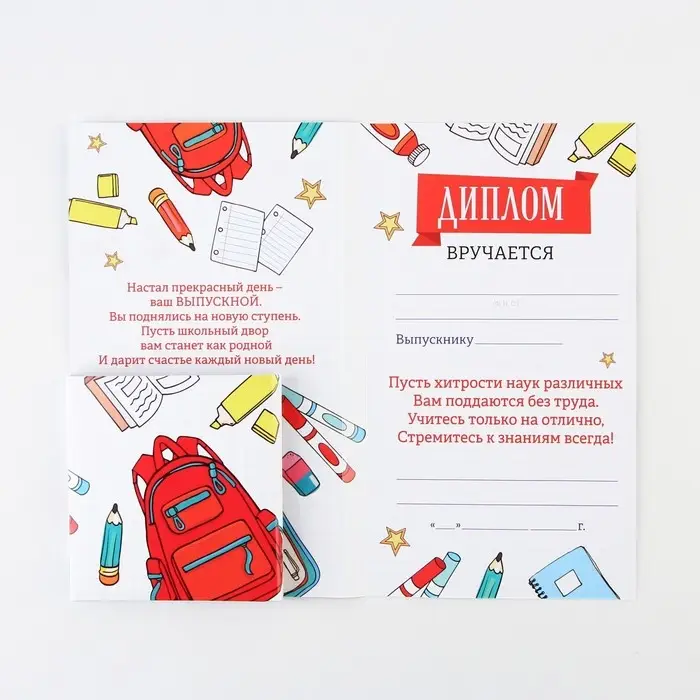 Диплом с местом под шоколад на Выпускной «Выпускник начальной школы», 220 гр/ кв. м