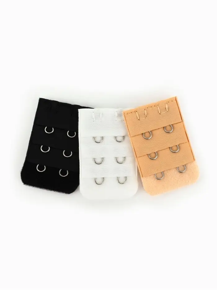 Застёжка-удлинитель для бюстгальтера, 3 ряда 3 крючка, 5 × 10,5 см, 3 шт, цвет чёрный/белый/бежевый