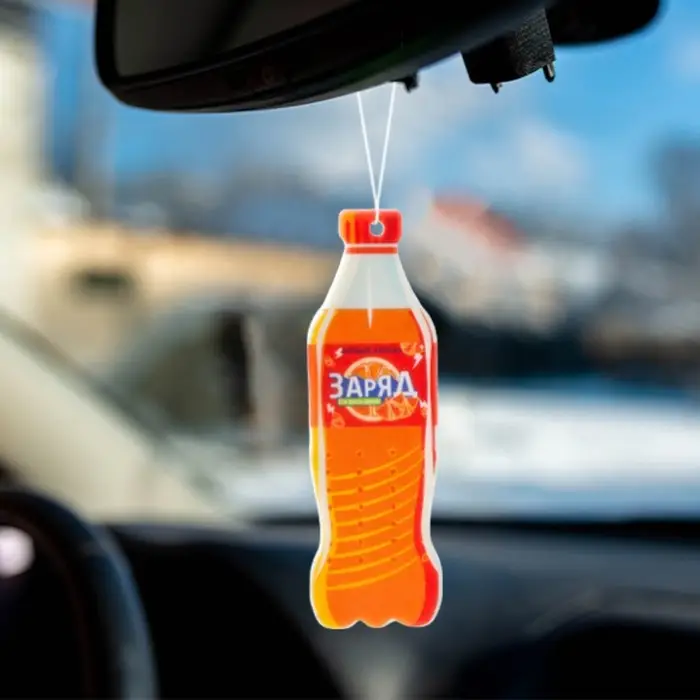 Подвесной ароматизатор для автомобиля и дома. Имеет лёгкий вес и цепляется за подвес на лобовое стекло или кладётся в любую нишу. Специальный картон пропитан парфюмерной композицией и источает приятный аромат, который охватит окружающее пространство и будет успокаивать и одновременно помогать оставаться бдительным. А яркий дизайн ароматизатора послужит хорошим украшением для салона.