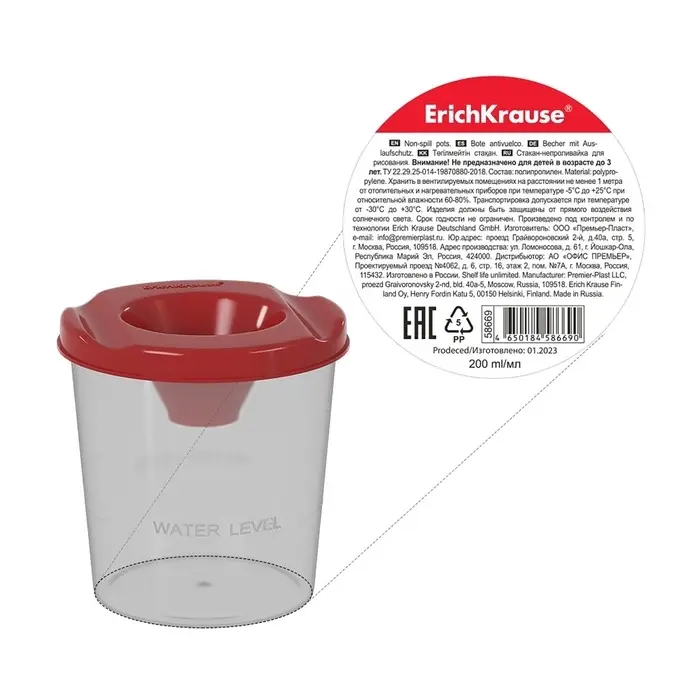 Стакан - непроливайка для рисования ErichKrause Classic, 200 мл, красный