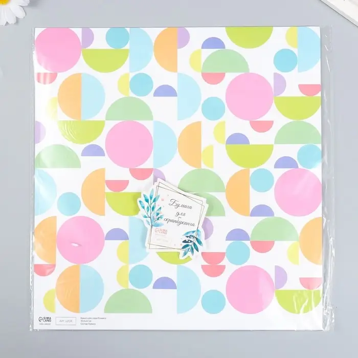 Бумага для скрапбукинга "Яркие круги" плотность 180 гр 30,5х32 см