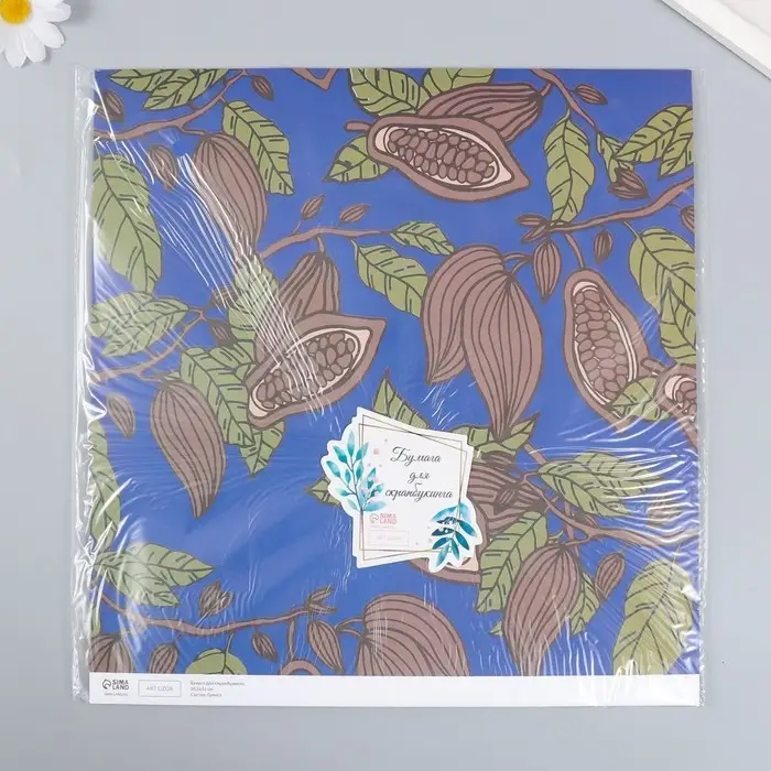 Бумага для скрапбукинга "Какао на синем" плотность 180 гр 30,5х32 см