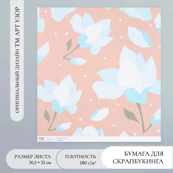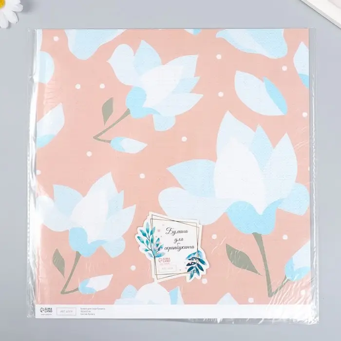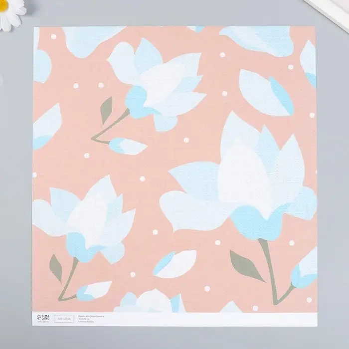 Бумага для скрапбукинга "Нежно-голубые цветы" плотность 180 гр 30,5х32 см