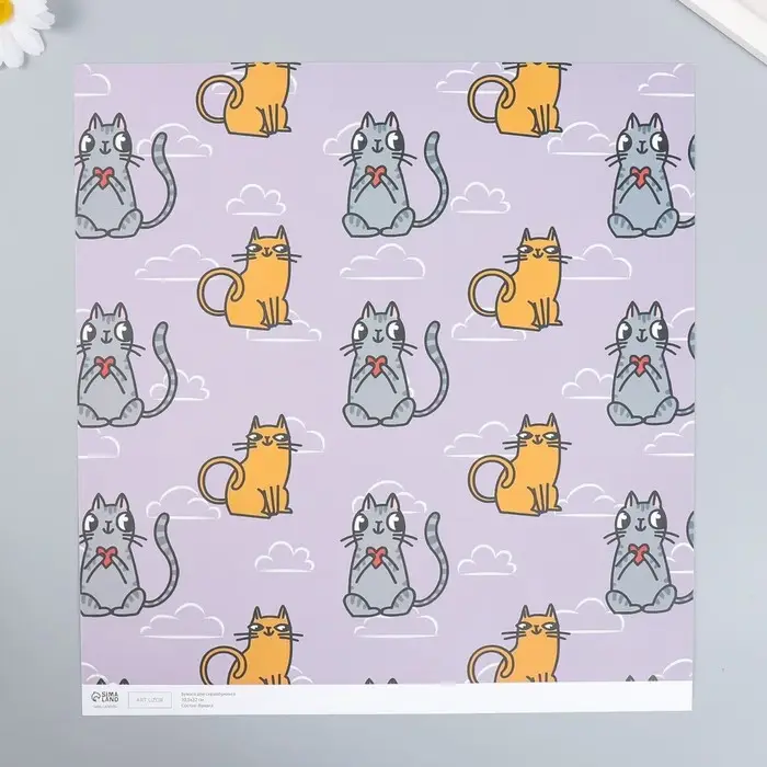 Бумага для скрапбукинга "Котики" плотность 180 гр 30,5х32 см