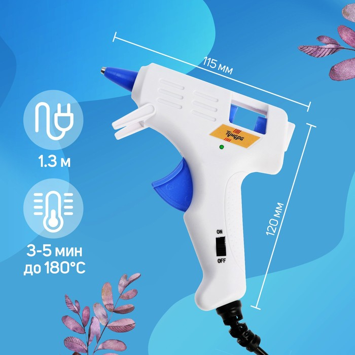 Клеевой пистолет ТУНДРА, 30 Вт, 220 В, выключатель, индикатор, антикапля, шнур 1.2 м, 7 мм