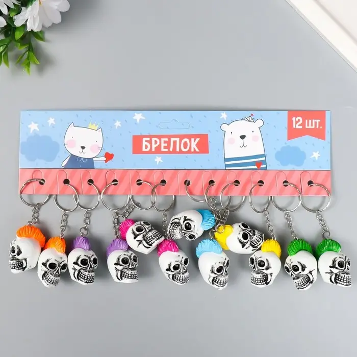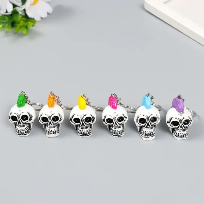Брелок пластик "Череп с ирокезом" МИКС 2,5х3х4 см