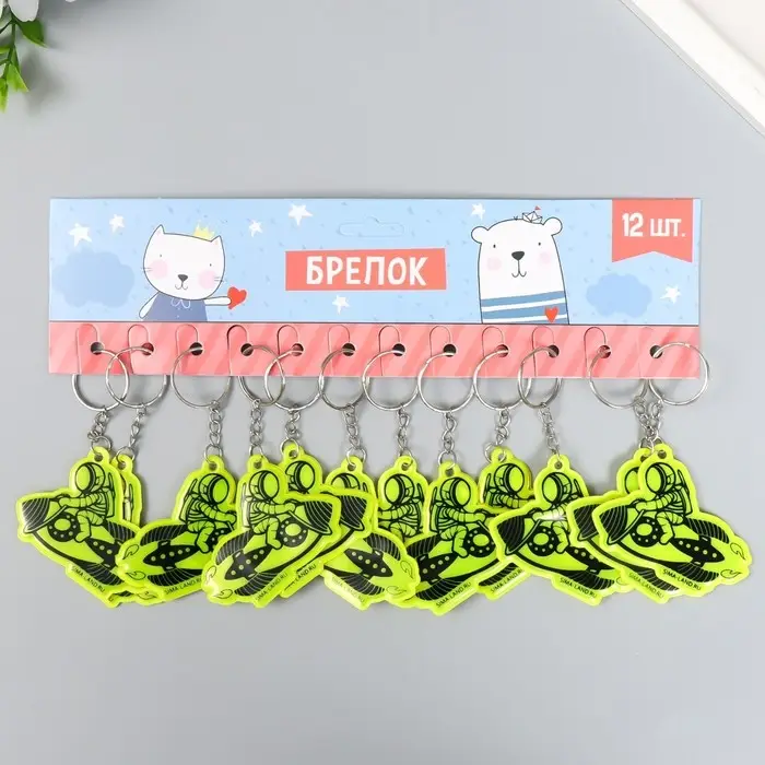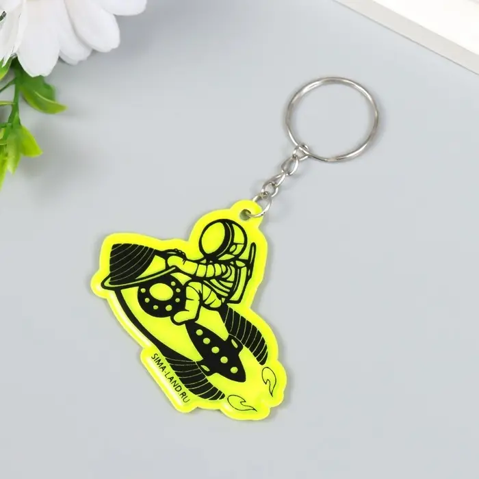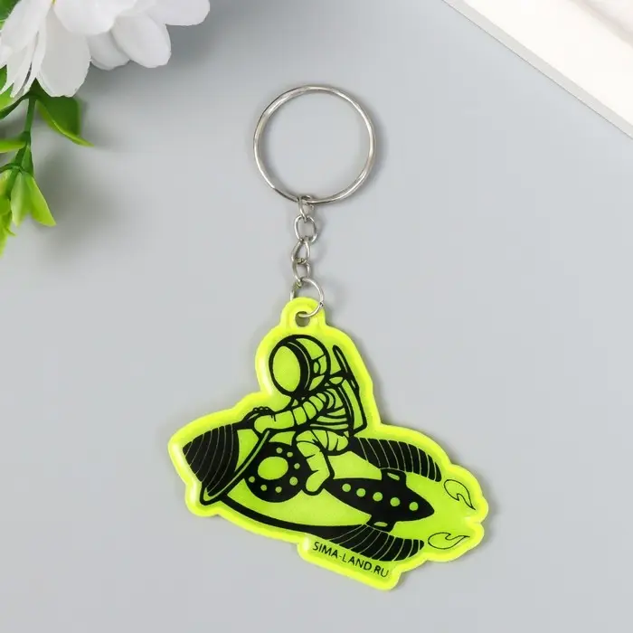 Брелок пластик светоотражающий "Космонавт верхом на ракете" 5,5х5,5 см