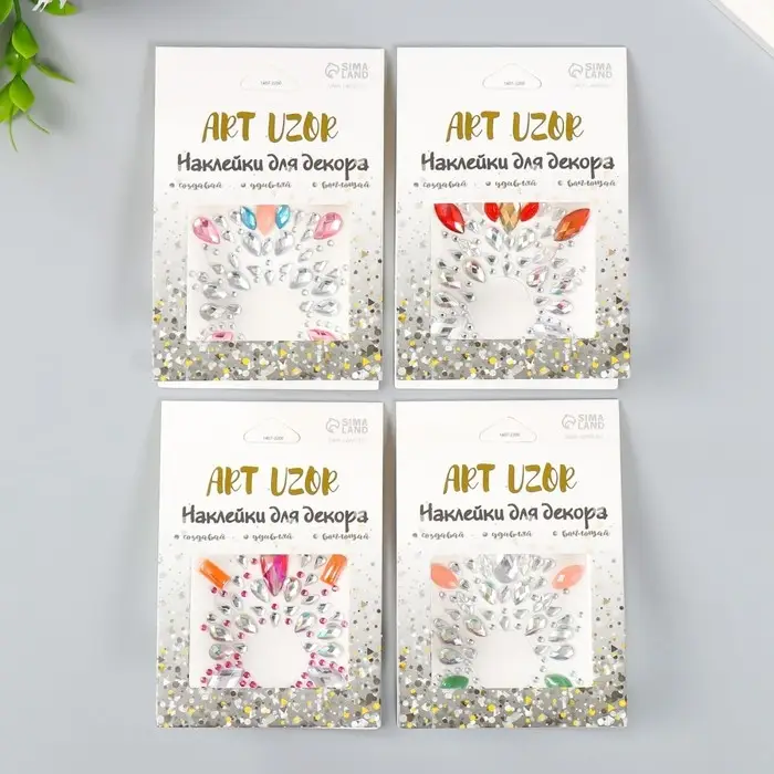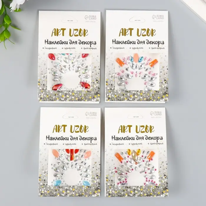 Наклейка пластик стразы "Украшение. Вспышка" МИКС 5,5х5,9 см