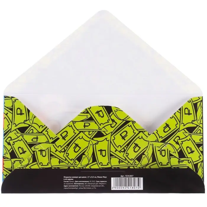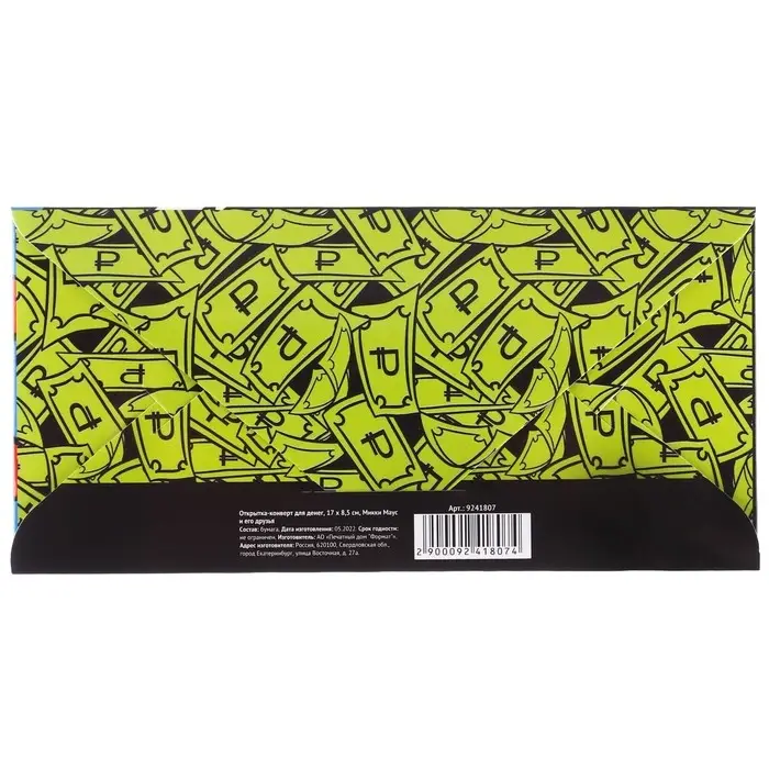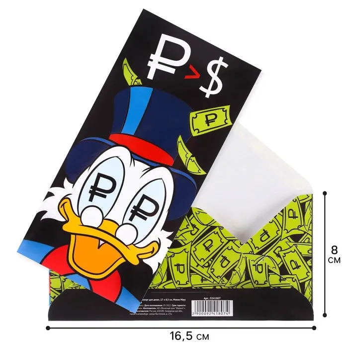 Конверт для денег, 16.5 х 8 см «Донольд Дак», Микки Маус