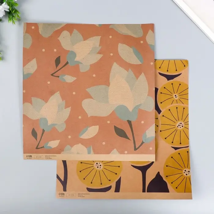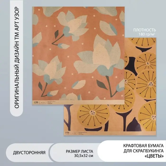 Бумага для скрапбукинга двусторонняя крафт "Цветы" плотность 180 гр 30,5х32 см