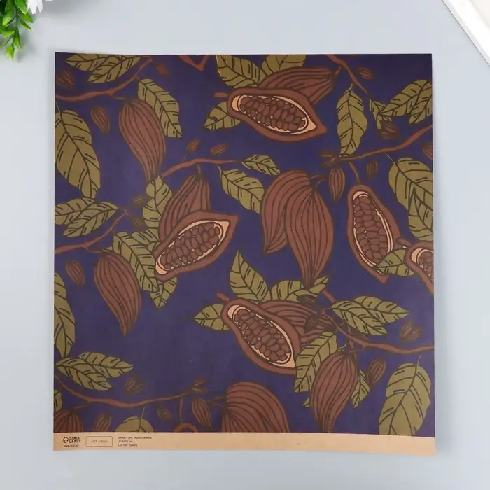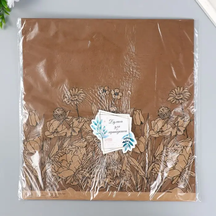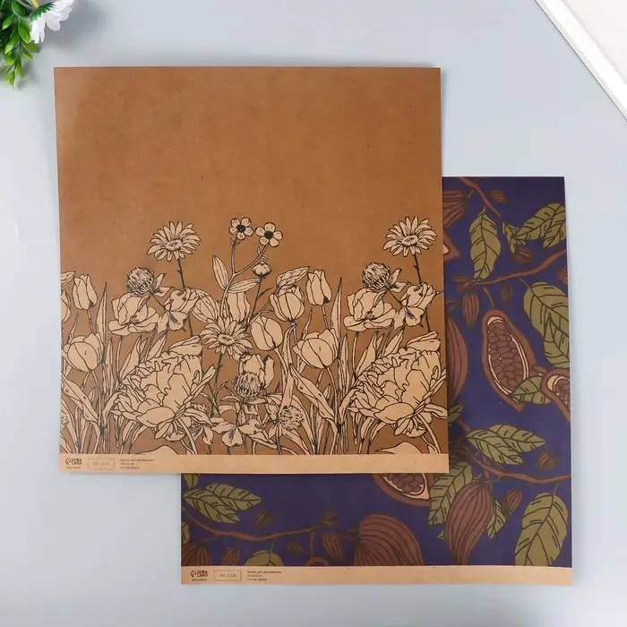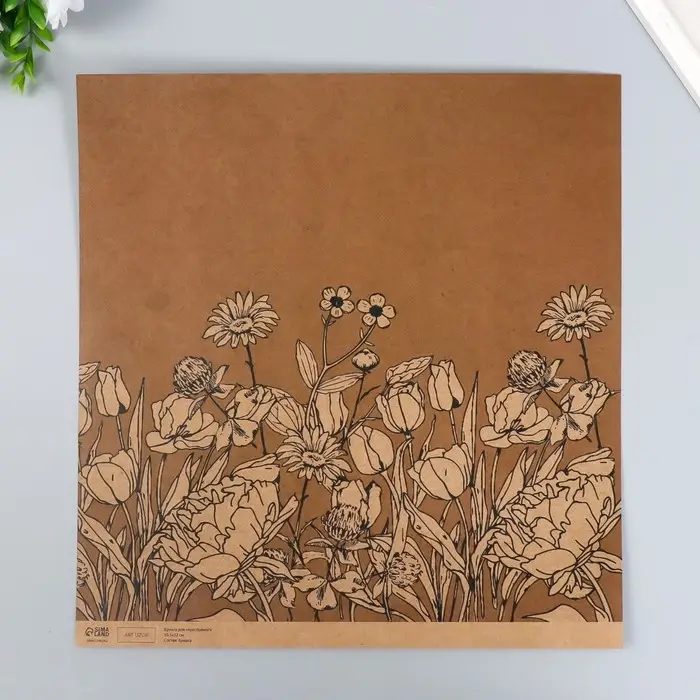 Бумага для скрапбукинга двусторонняя крафт "Какао и цветы" плотность 180 гр 30,5х32 см