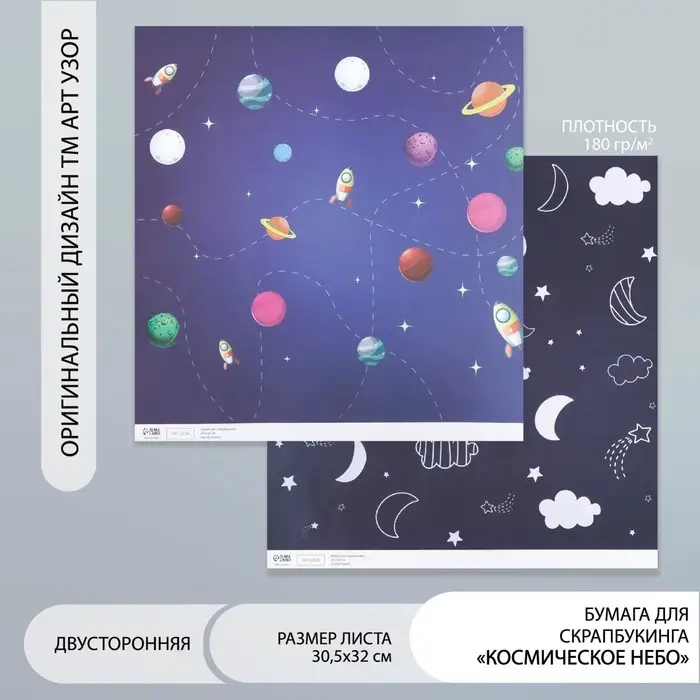 Двусторонняя бумага для скрапбукинга «Арт Узор. Космическое небо», 180 г/м², 30.5×32 см