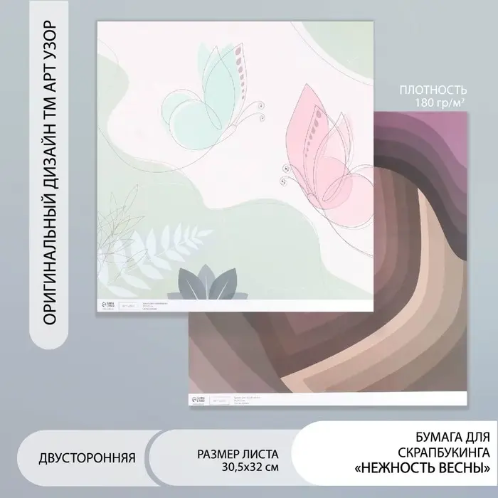Бумага для скрапбукинга двусторонняя "Нежность весны" плотность 180 гр 30,5х32 см