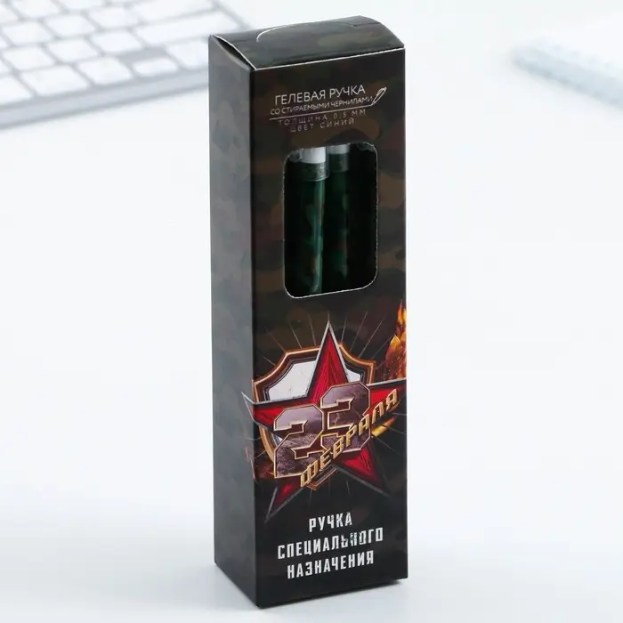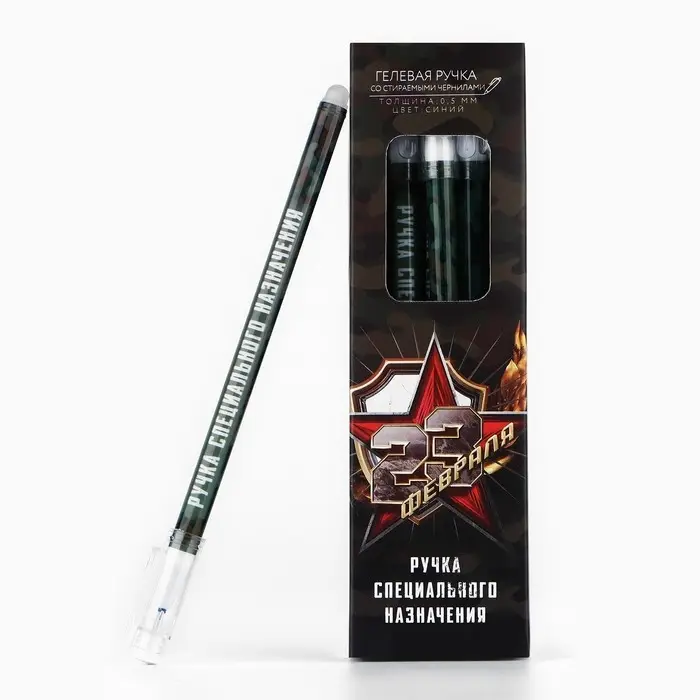Ручка пиши стирай синяя паста 0,5 мм с колпачком «23 февраля»