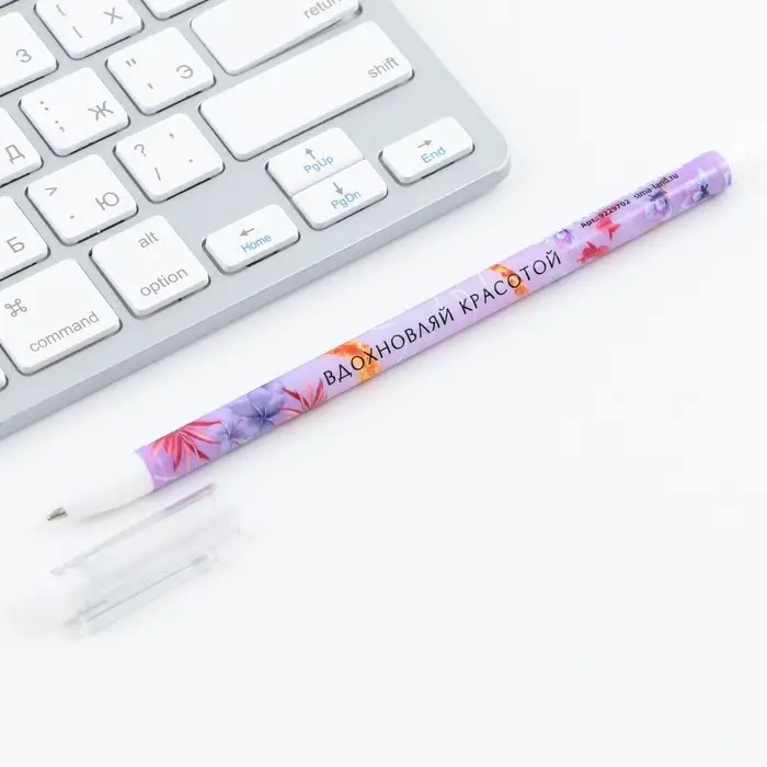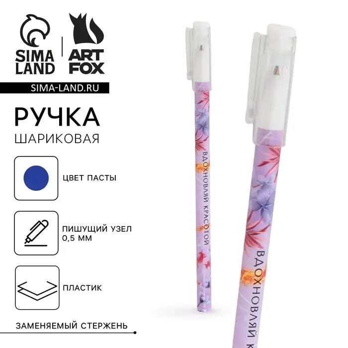 Ручка шариковая, синяя паста 0.5 мм с колпачком пластик «Вдохновляй красотой»