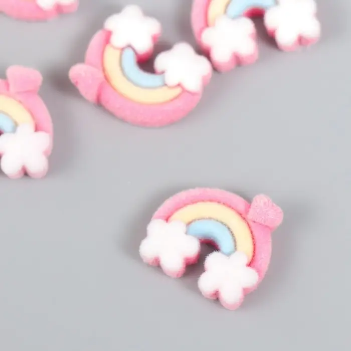 Пластиковый декоративный элемент «Арт Узор. Радуга с сердечком», бархатное напыление, 0.6×1.7×2 см