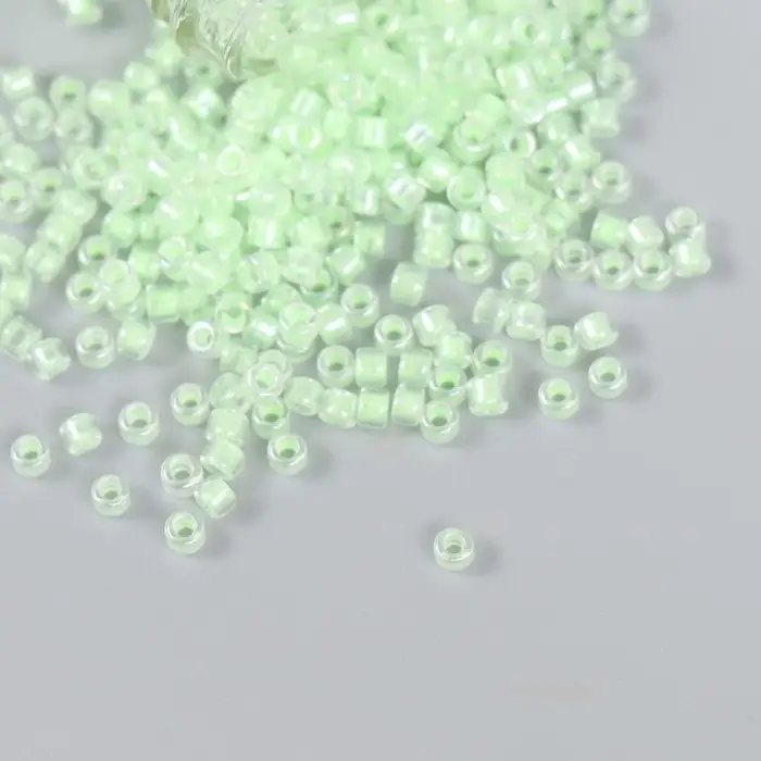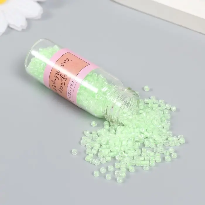 Бисер 8/0 в бутылочке "Полупрозрачный с цв.серединой. Мята" светится под УФ 20 гр 6х2х2 см