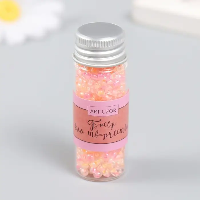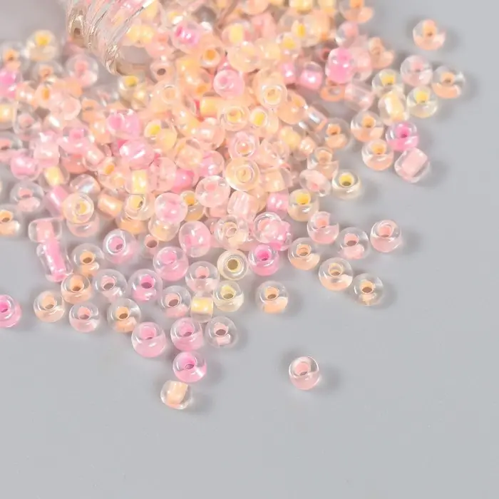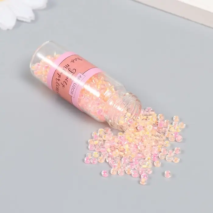 Бисер 8/0 в бутылочке "Полупрозрачный с цв.серединой. Лето" светится под УФ 20 гр 6х2х2 см