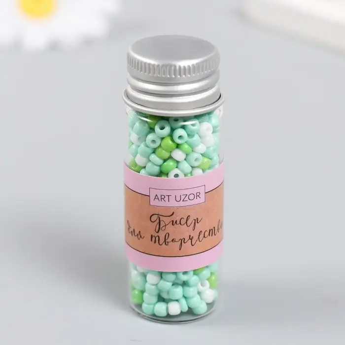 Бисер 8/0 в бутылочке "Молодая зелень" 20 гр 6х2х2 см