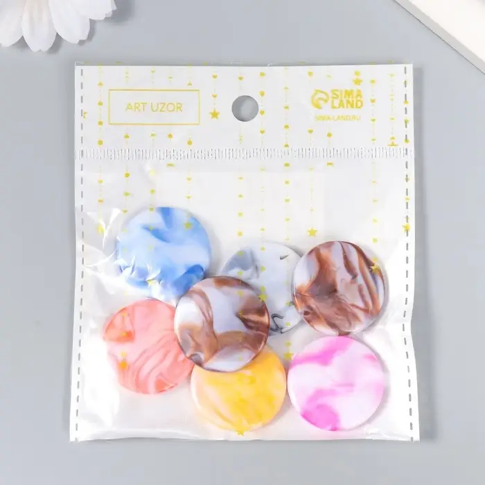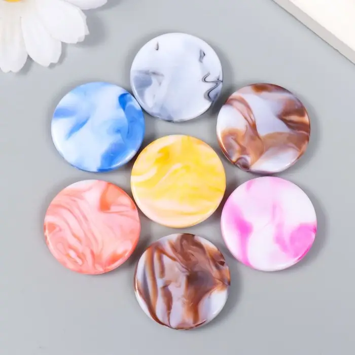 Бусины для творчества пластик "Плоские круги мрамор" цветные 20 гр 0,5х2,7х2,7 см