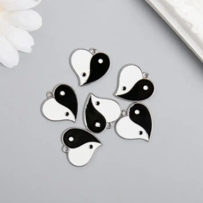 Металлический элемент, декоративная подвеска «Арт Узор. Инь-ян сердце», эмаль, серебро, 2.1×1.9 см