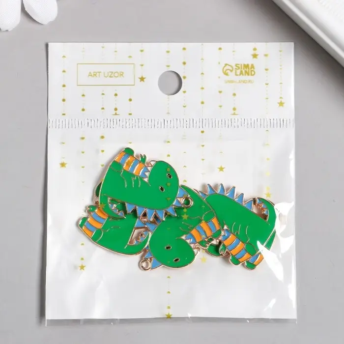 Декор для творчества металл, эмаль "Зелёный дракоша" золото 2,3х2,8 см