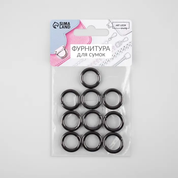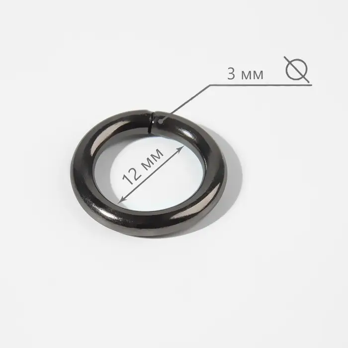 Кольца для сумок, d=12/18 мм, толщина - 3 мм, 10 шт., цвет чёрный никель