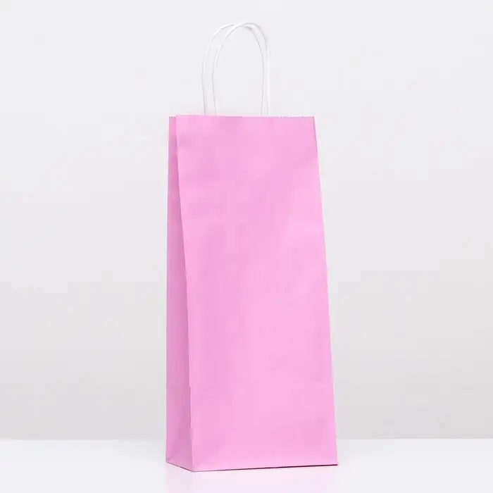 Пакет крафт под бутылку, Сиреневый, 14×8×32 см