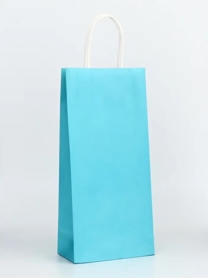 Пакет крафт под бутылку, «Лазурный», 14×8×32 см