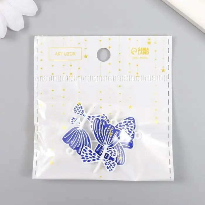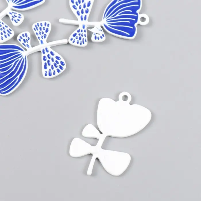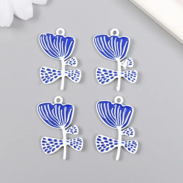 Декор для творчества металл, эмаль "Бело-синий цветок" 2,2х3 см