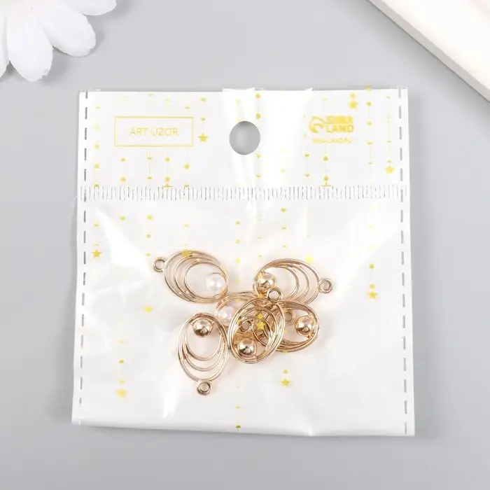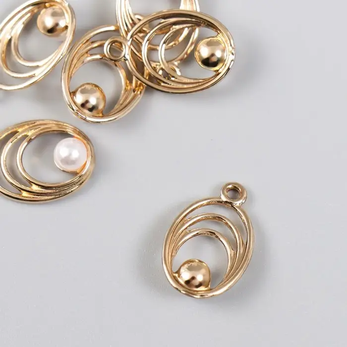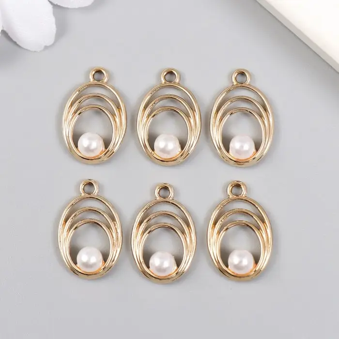 Декор для творчества металл, пластик "Овал с бусинкой" 1,2х2 см