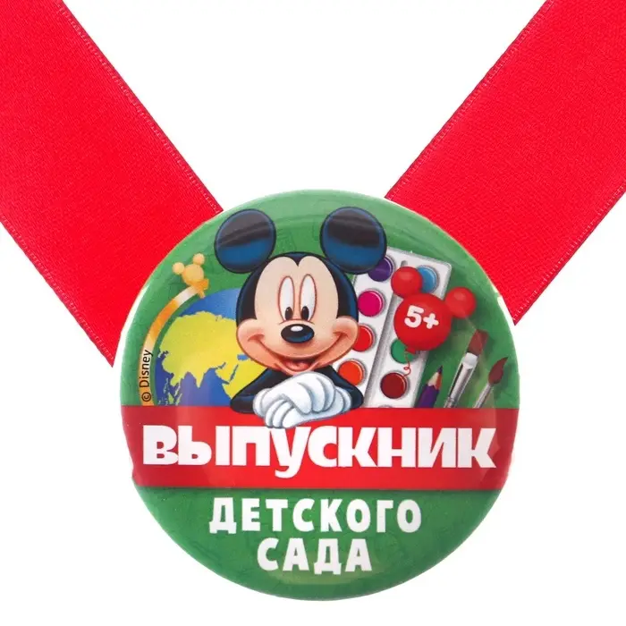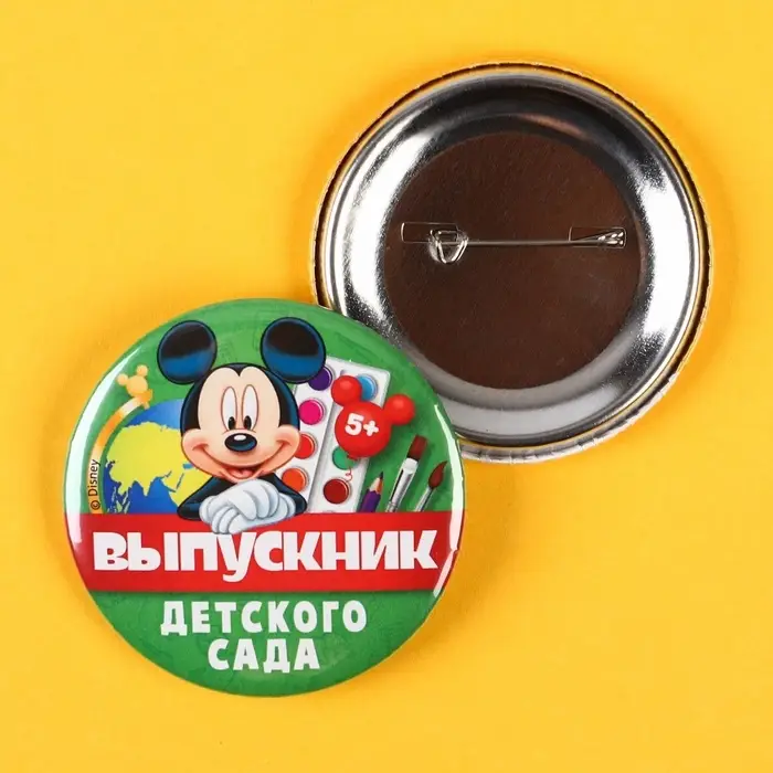 Значок на выпускной «Выпускник детского сада» 5.6 см, с лентой, Микки Маус