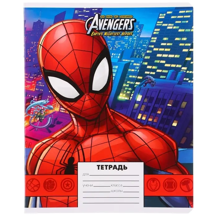 Тетрадь в клетку 24 листа, 5 видов МИКС, обложка мелованная бумага, «Человек-паук»