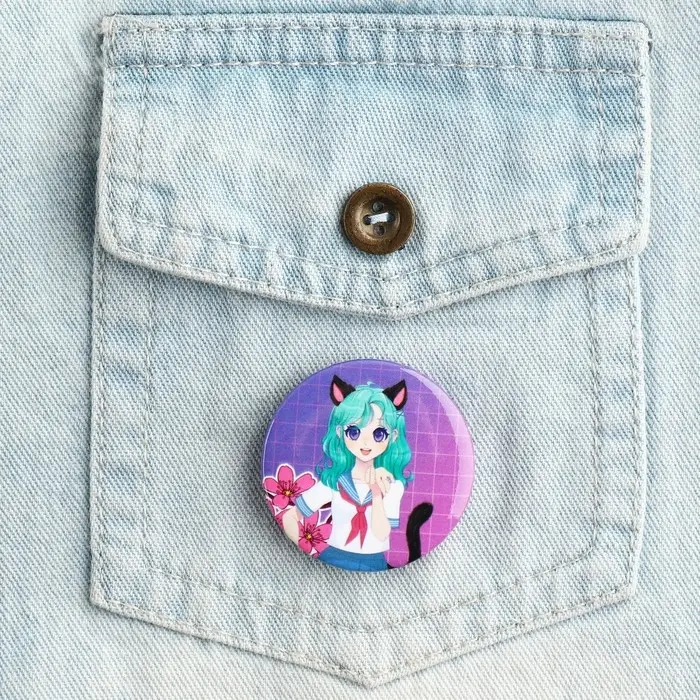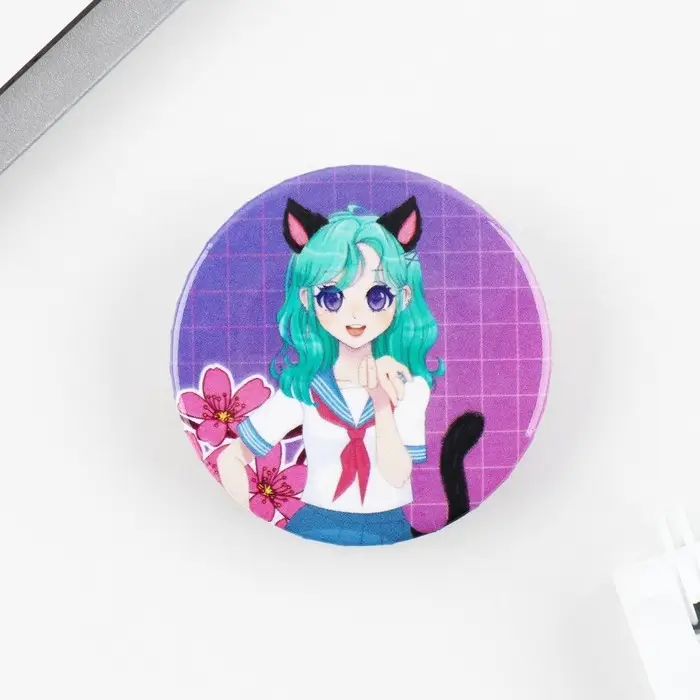 Значок закатной аниме «Девушка с ушками», d=3.8 см