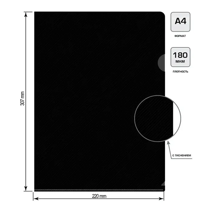 Папка уголок А4 180мкм, Calligrata DeLuxe, черный, непрозрачный, с тиснением