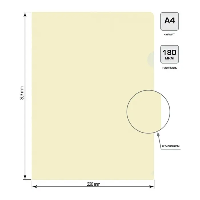 Папка уголок А4 180мкм, Calligrata DeLuxe, молочный, непрозрачный, с тиснением